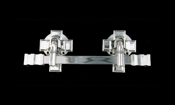 Featuring a square metal bar with cross backplates.