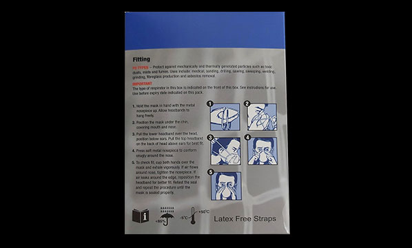 P2 Face Mask – Disposable respirator mask with head straps. Sold per pack of 20.